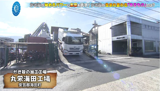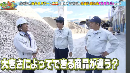 事業内容は、広島の養殖産業を支える会社として、年間約10万トンの牡蠣殻を