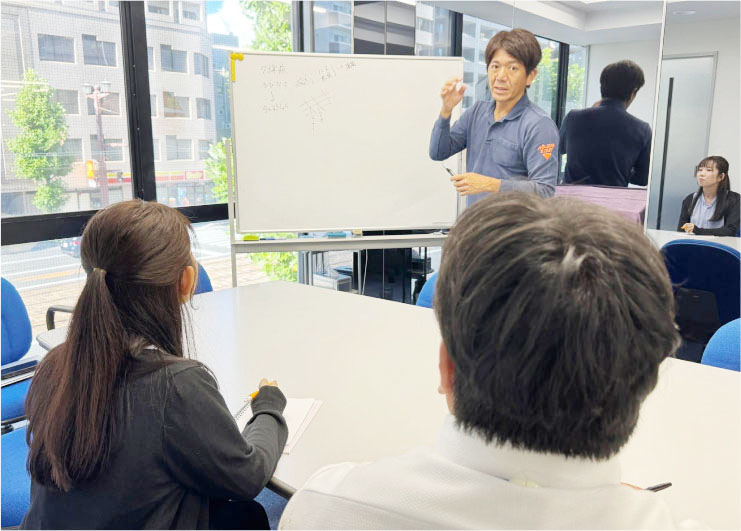 入社時にはもちろん、新入社員1名に1名の指担当導員が充実した営業研修を計画的に行うことを導入しています。さらに入社から一か月後、三か月後、半年後と担当営業指導員と面談を予定に入れています。